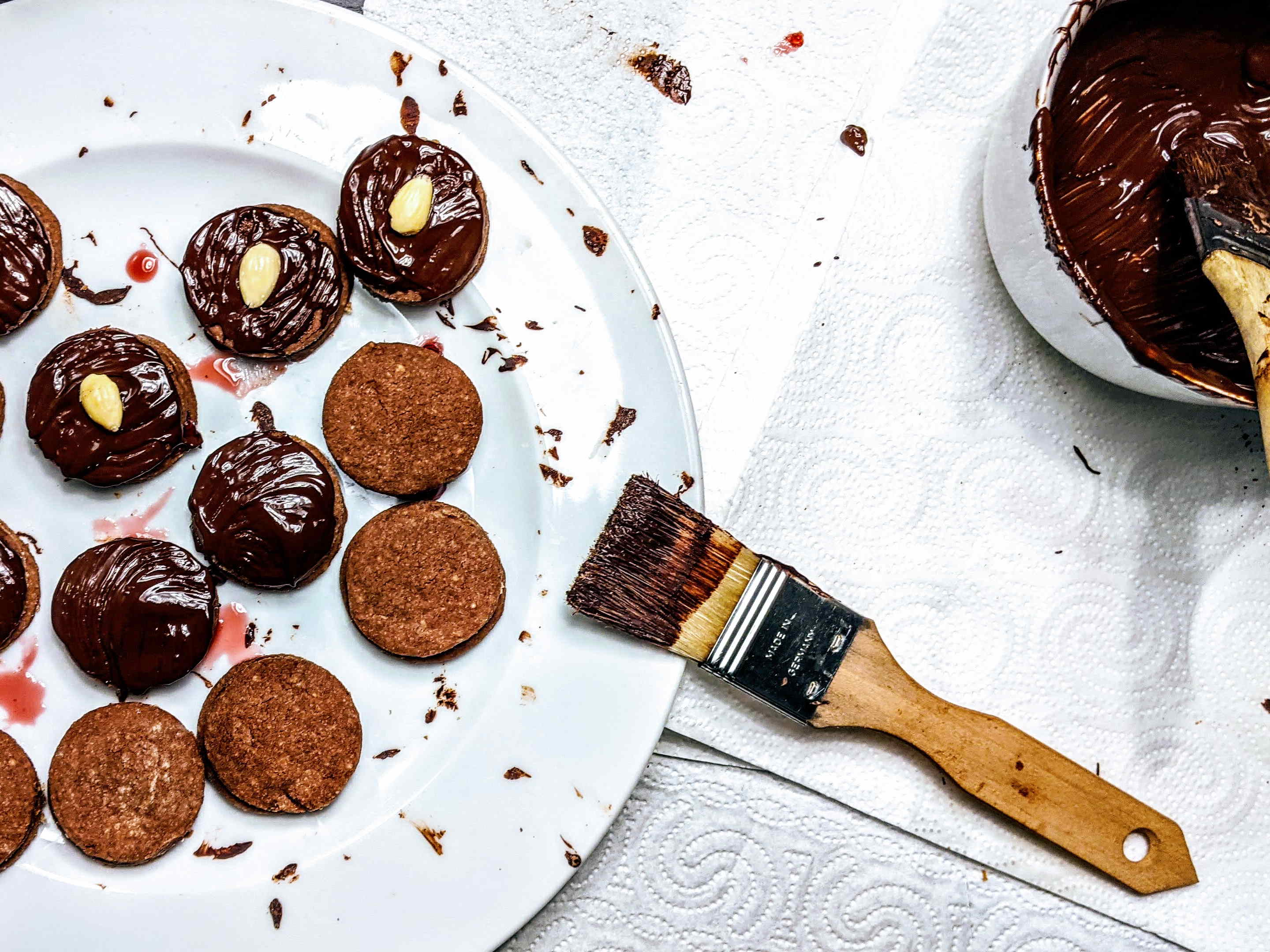 Die Herstellung der Brabanzerl ist nicht ganz unaufwändig. Aber es lohnt sich. Dabei ist jede Zutat wichtig: Der krümelige Teig genauso wie das Johannesbeergelee, aber auch die Zartbitter-Kuvertüre und die Mandel als knackige Dekoration.